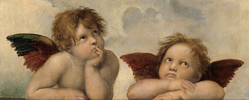 让我们来对比一下契马布埃的同样主题的《圣母像》和拉斐尔的这幅,就能看到二百年来艺术的进步有多么惊人。我是觉得,那个时代绘画艺术已经达到了顶峰,以后人类在绘画上的进步,都只是寻求新的风格或题材,而象拉斐尔这样的作品,永远不能逾越。