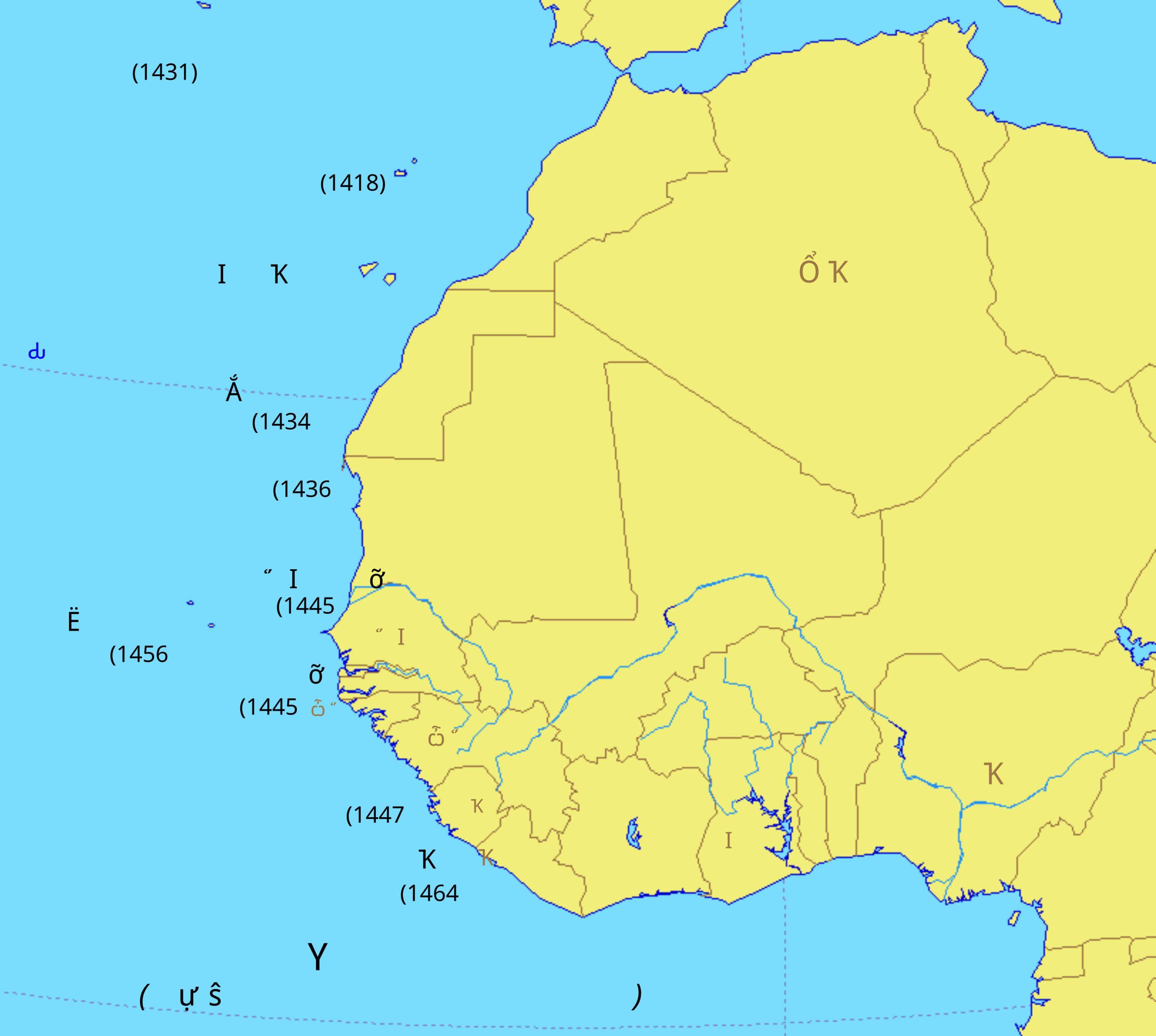 1435年,恩里克王子派出的船队驶过了布兰科角[Cabo Blanco;今名Ras Nouadhibou],从西撒哈拉,毛里塔尼亚,整个的海岸都是荒凉的沙漠,这段航行需要坚强的毅力。但是从这里开始是真正的黑人非洲,他们发现当地的黑人并不信仰伊斯兰教。葡萄牙人兴奋地发现已经绕过了伊斯兰教地区。