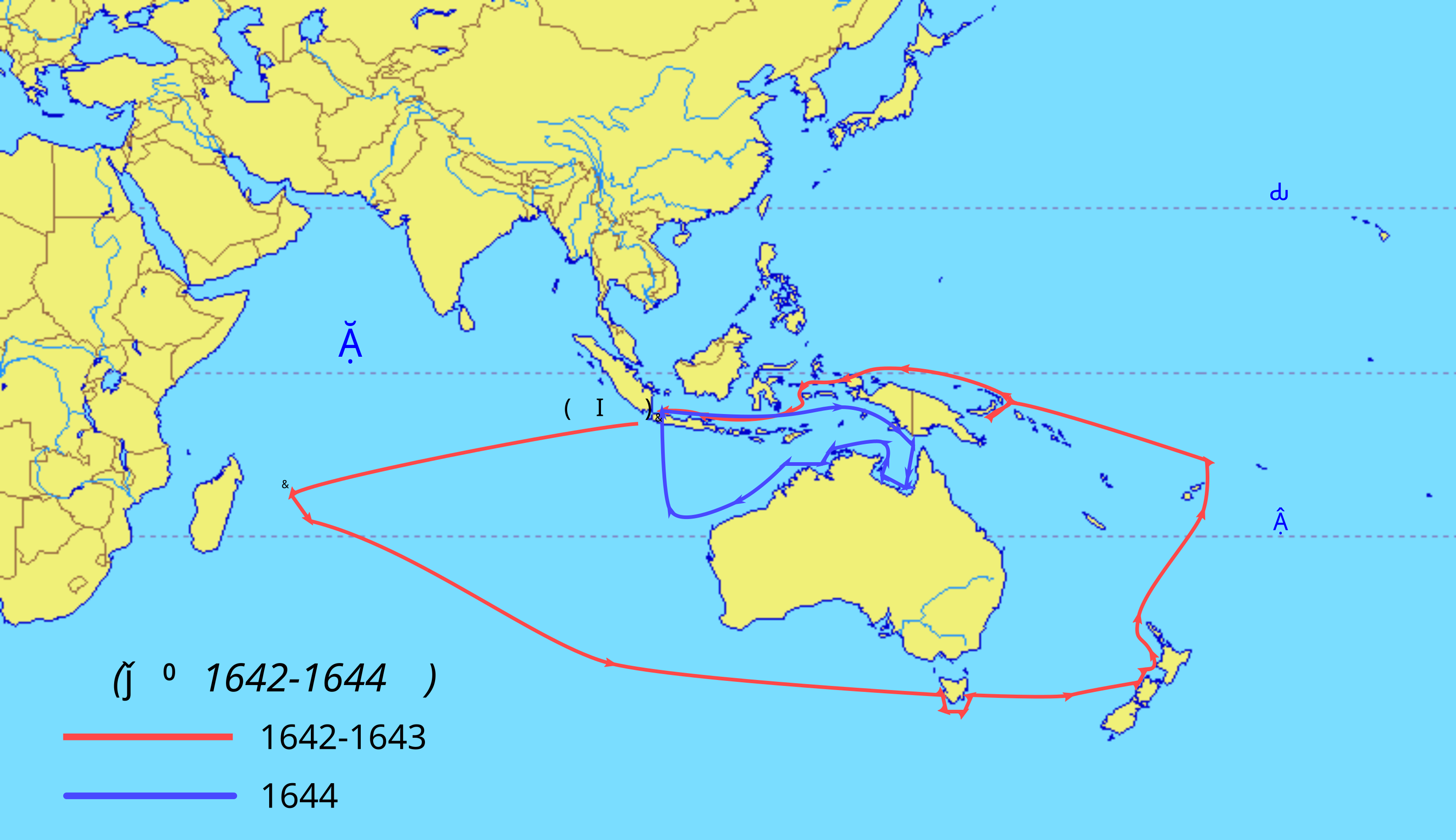 不久以后,荷兰的阿贝尔·塔斯曼[Abel Tasman;1603-1659]奉荷兰东印度公司之命探索新荷兰,1642年10月,塔斯曼从非洲的毛里求斯横跨印度洋到达澳大利亚,经过澳大利亚南部,发现一个大岛,为纪念他今天称之为塔斯马尼亚岛。1643年1月,他又到达新西兰,以荷兰最大的省西兰省命名这里为新西兰,之后北上发现了汤加和斐济。1644年,塔斯曼再次远航,大致知道了澳大利亚的大小,也知道了澳大利亚并不延伸到南极,改变当时欧洲人对南方大陆的认知,不过当时很多人仍然猜想新西兰可能是南方大陆的一部分。
